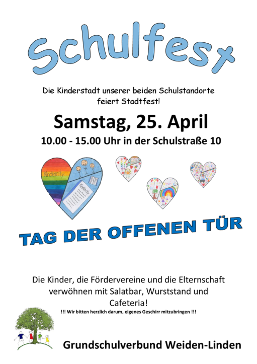 Zum Schulfest am 25. April 2026 ab 10 Uhr sind Sie herzlich eingeladen.